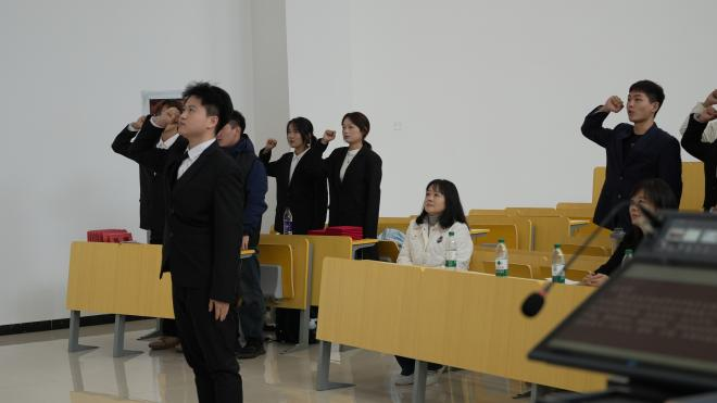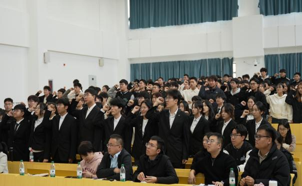 之后,我院全体学生组织成员在朱璟烨的带领下庄严宣誓,铿锵有力的誓言回荡在会场,彰显了新一届学生组织干部的决心与使命感。此外,往届已毕业的学生组织干部们也通过视频等形式送上寄语,为新一届学生组织成员加油鼓劲,传递温暖与力量。