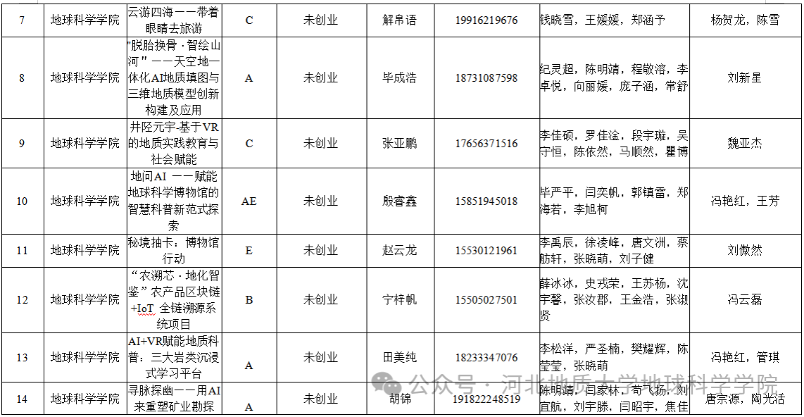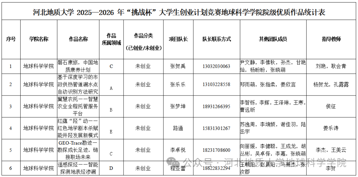 后续,我们还将持续跟进院级优质项目进度,通过专业老师辅导等形式,助力项目提质增效,以最佳状态参加校级竞赛,充分展现地球科学学院学子的创新实践能力与创业风采。