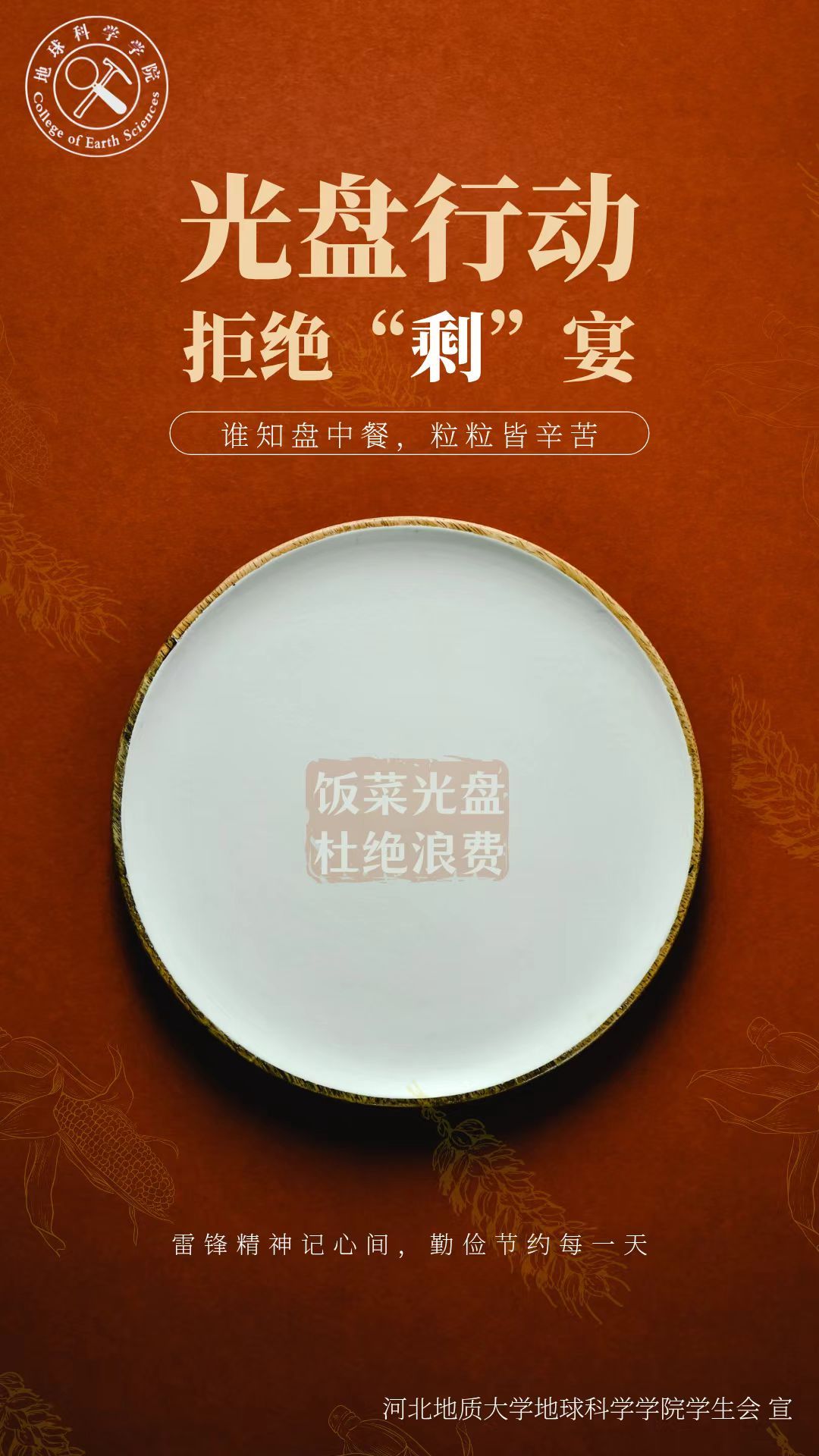 为深入践行雷锋精神,响应国家“厉行节约、反对浪费”的号召,地球科学学院于2026年3月9日至13日开展“光盘行动”主题活动,引导全院同学养成文明用餐、珍惜粮食的良好习惯,让节约理念扎根校园。