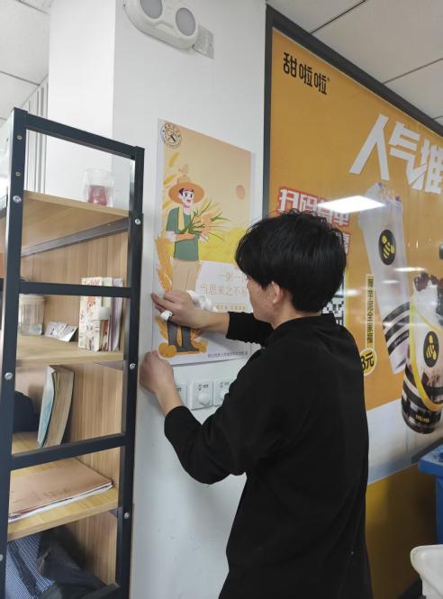 活动前期,学院通过张贴主题海报、组织线下宣讲等方式,扎实做好宣传动员工作。学生组织成员在食堂、教学楼等人流密集区域张贴活动海报,直观传递“节约光荣、浪费可耻”的理念;同时面向各班级开展主题宣讲,详细讲解活动背景、打卡流程及学分奖励规则,将雷锋同志勤俭节约的精神与日常用餐行为相结合,使同学们充分认识到光盘行动的意义,踊跃报名参与到活动中来。