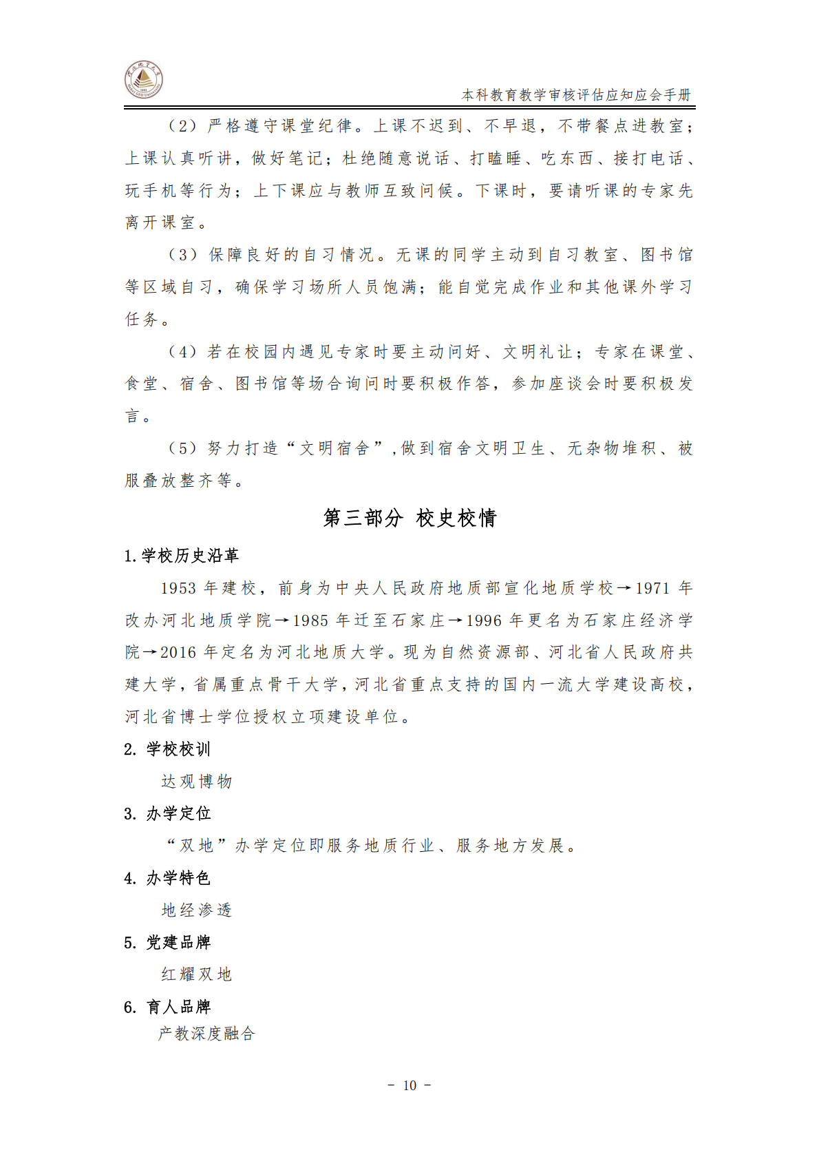 河北地质大学本科教育教学审核评估应知应会手册(学生版)